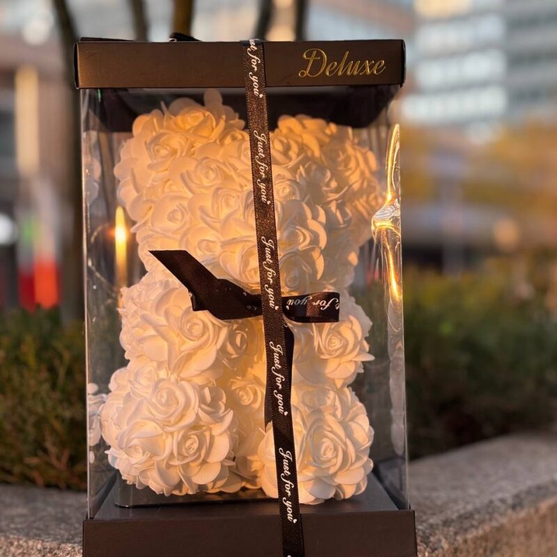 Flowerbox z hortensją, różą, eustomą i lilią to elegancka kompozycja kwiatowa w pudełku, która łączy w sobie objętość, delikatność i wyrafinowany styl. Starannie dobrane kwiaty w odcieniach fioletu, bieli i pasteli tworzą harmonijną i luksusową aranżację. W skład flowerboxa wchodzą hortensja, róże ogrodowe, eustoma, lilie, goździki oraz dodatki sezonowe i zieleń dekoracyjna. Jeśli szukasz więcej podobnych kompozycji, sprawdź nasze flowerboxy lub stylowe bukiety mieszane. Hortensja nadaje kompozycji objętości i miękkiej formy, róże wprowadzają elegancję i romantyczny charakter, eustoma podkreśla lekkość, a lilie dodają wyrazistości i subtelnego zapachu. Całość tworzy spójną, bogatą i nowoczesną композицию. Flowerbox z hortensją, różą, eustomą i lilią doskonale sprawdzi się jako prezent na urodziny, rocznicę, Dzień Kobiet lub jako elegancki gest bez okazji. To idealny wybór dla osób, które cenią styl premium i wygodę. Dzięki zastosowaniu gąbki florystycznej kwiaty mają stały dostęp do wody, co pozwala im dłużej zachować świeżość. Flowerbox nie wymaga wazonu, co czyni go praktycznym i nowoczesnym rozwiązaniem prezentowym. Każda kompozycja tworzona jest indywidualnie, dlatego może się nieznacznie różnić w zależności od dostępności kwiatów, zachowując jednak styl i kolorystykę zbliżoną do zdjęcia. Do flowerboxa możesz dobrać dodatki, takie jak balony, słodycze lub pluszaki, aby stworzyć wyjątkowy zestaw prezentowy. Zobacz więcej naszych realizacji: @studiodeluxe_pl Na zdjęciu flowerbox z hortensją, różami, eustomą i lilią w pastelowo-fioletowej kolorystyce.