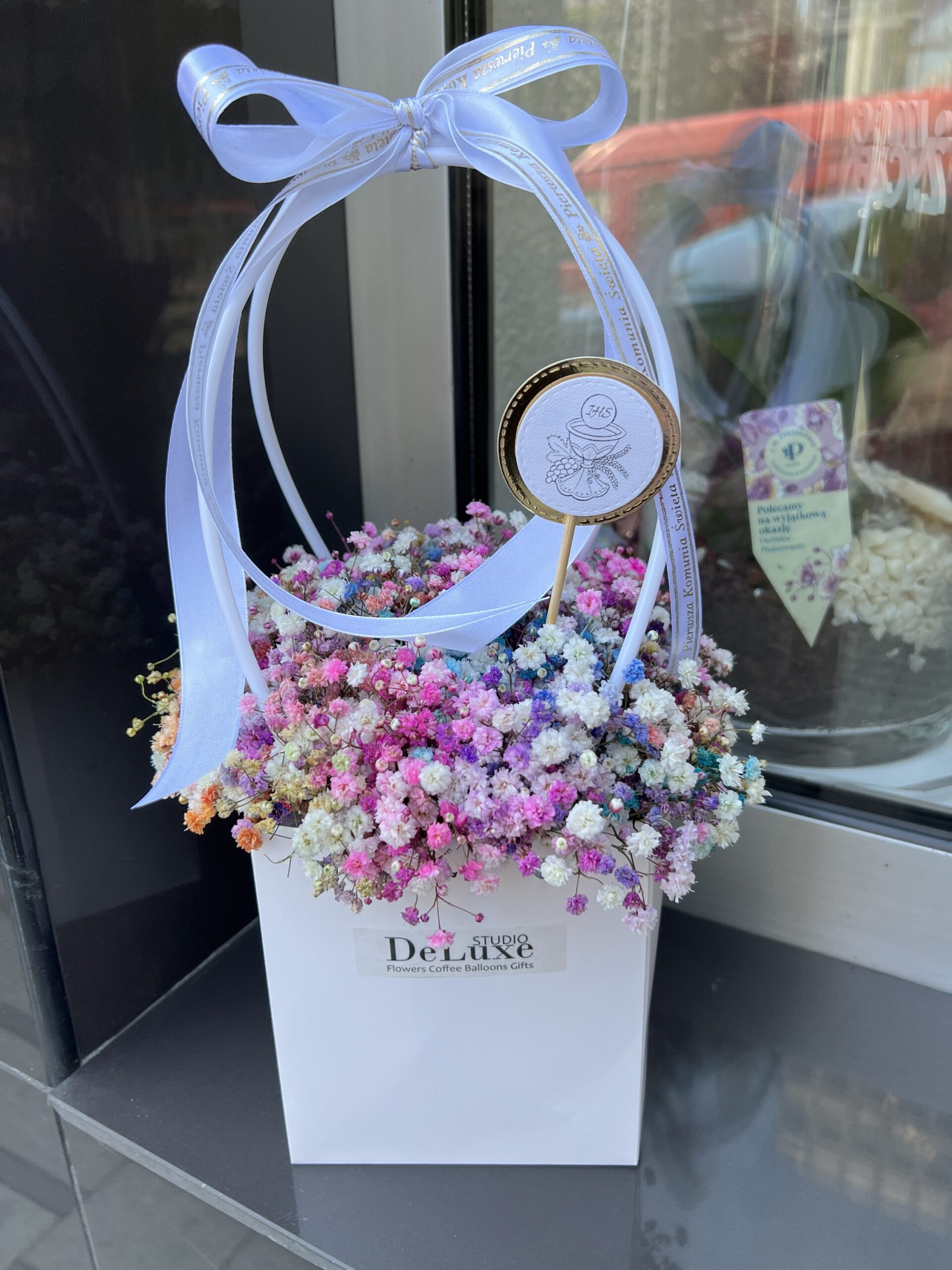 Gipsówka to wyjątkowo subtelna i elegancka kompozycja, która doskonale wpisuje się w charakter Pierwszej Komunii Świętej. Drobne, lekkie kwiaty tworzą romantyczną i naturalną formę, idealną na tak ważną uroczystość. Bukiet z gipsówki wyróżnia się swoją delikatnością, lekkością oraz uniwersalną, jasną kolorystyką. Gipsówka na komunię świetnie sprawdzi się jako prezent, dekoracja stołu lub dodatek do stylizacji komunijnej. Kompozycja może być przygotowana w klasycznej bieli lub w wersji barwionej – w zależności od preferencji. Jeśli szukasz więcej inspiracji, sprawdź nasze monobukiety oraz bukiety mieszane. Gipsówka to wybór dla osób, które cenią minimalizm, elegancję i ponadczasowy styl. Każdy bukiet przygotowywany jest na świeżo, dlatego może się nieznacznie różnić w zależności od dostępności. Zobacz więcej inspiracji: @studiodeluxe_pl Na zdjęciu bukiet gipsówki przygotowany na komunię w jasnej, delikatnej stylistyce.