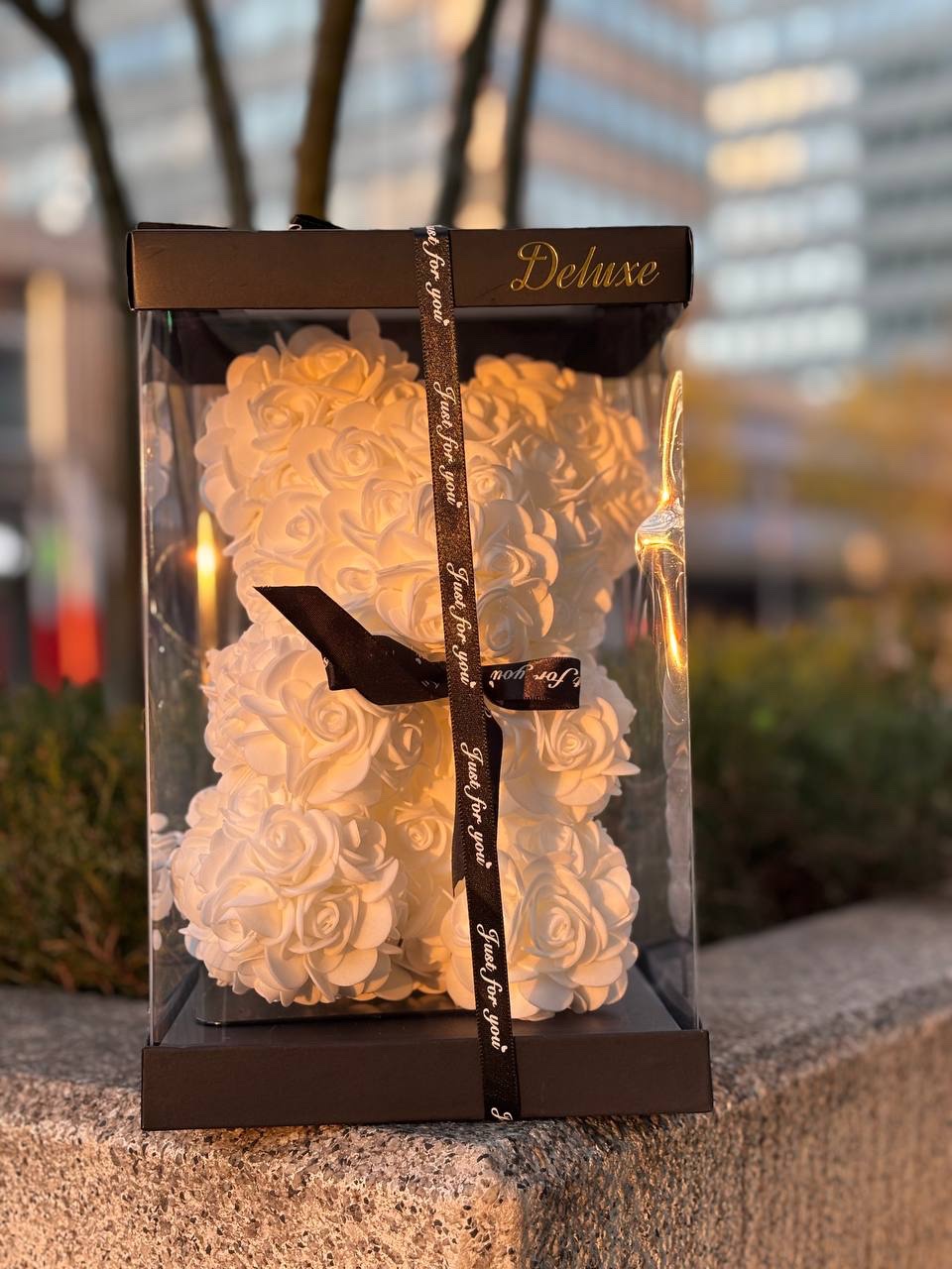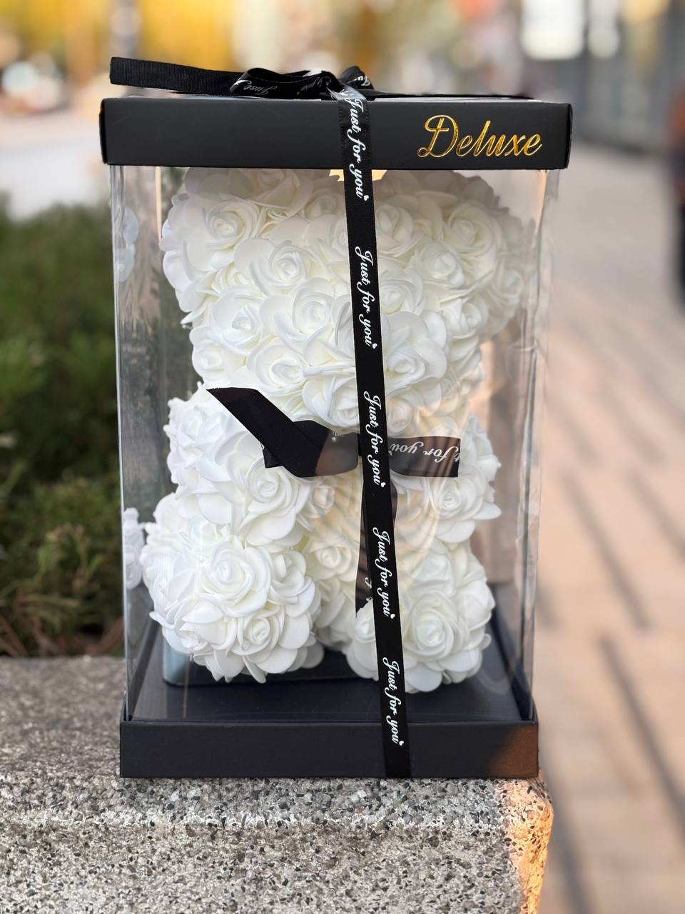 Miś ze sztucznych róż – elegancki prezent