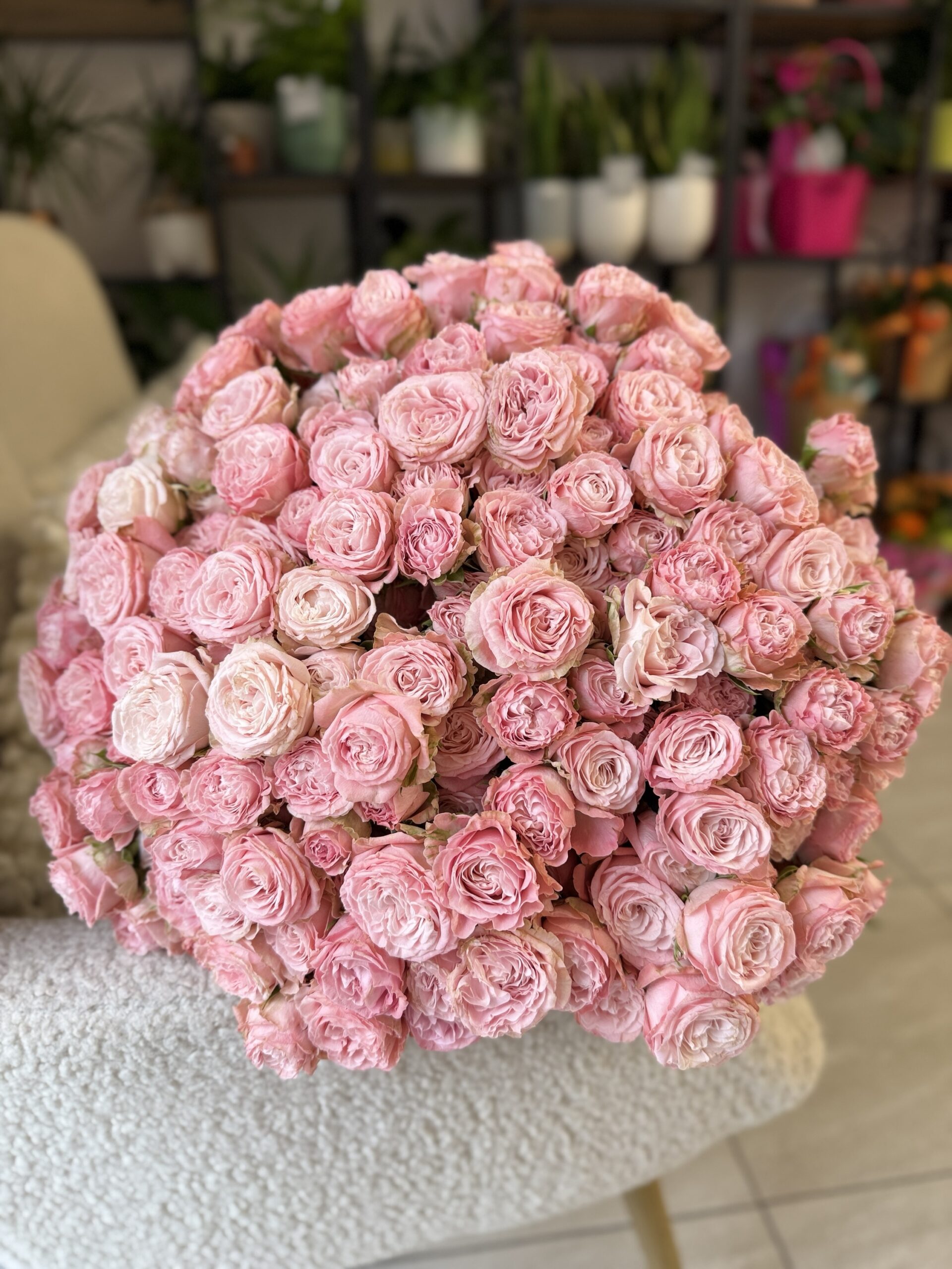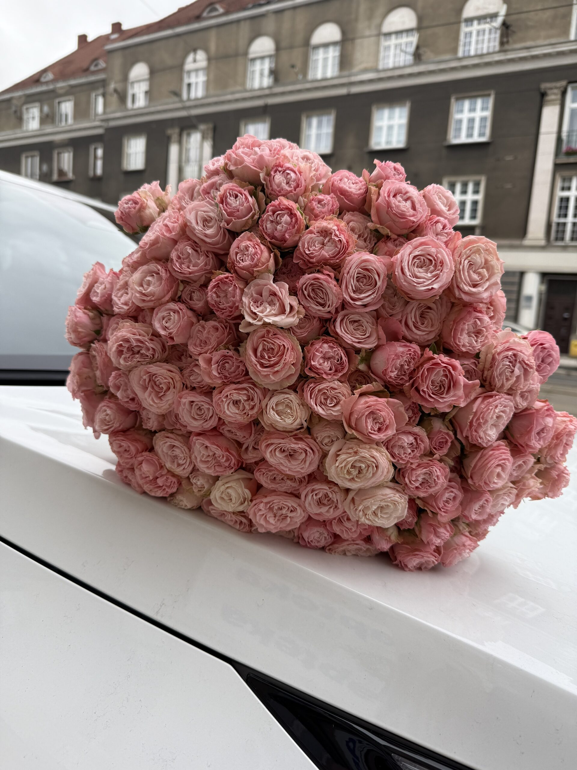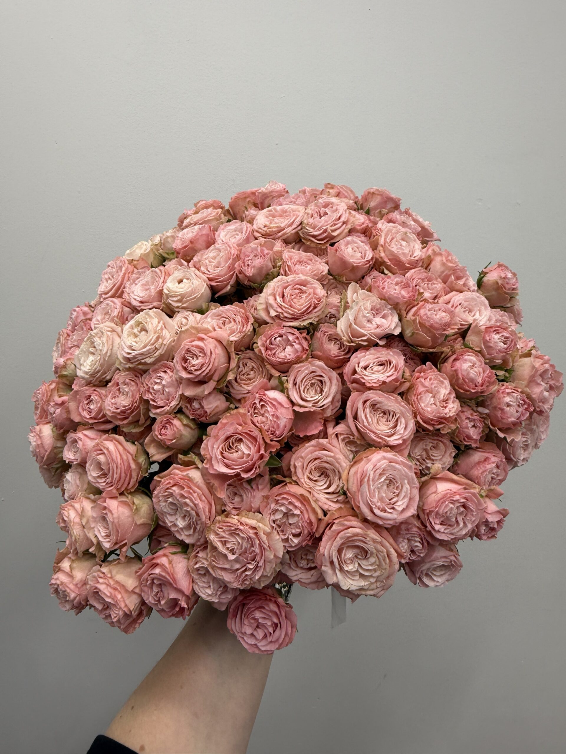 Bukiet z róż gałązkowych Bombastic – pudrowy róż, styl premium. Zamów kwiaty z dostawą w Poznaniu.