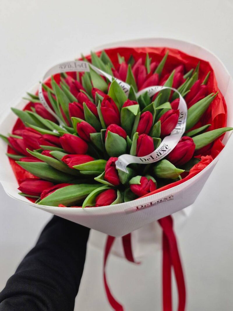 Bukiet z czerwonych tulipanów to pełna wyrazu, klasyczna kompozycja o spektakularnym efekcie wizualnym. Nasycona barwa kwiatów przyciąga uwagę i nadaje całości wyjątkowego charakteru – od romantycznego, przez elegancki, aż po odważny i zdecydowany. Czerwone tulipany tworzą intensywny, gęsty bukiet, który zachwyca swoją prostotą i siłą przekazu. To idealny wybór, by wyrazić głębokie uczucia – miłość, podziw, wdzięczność czy szacunek.