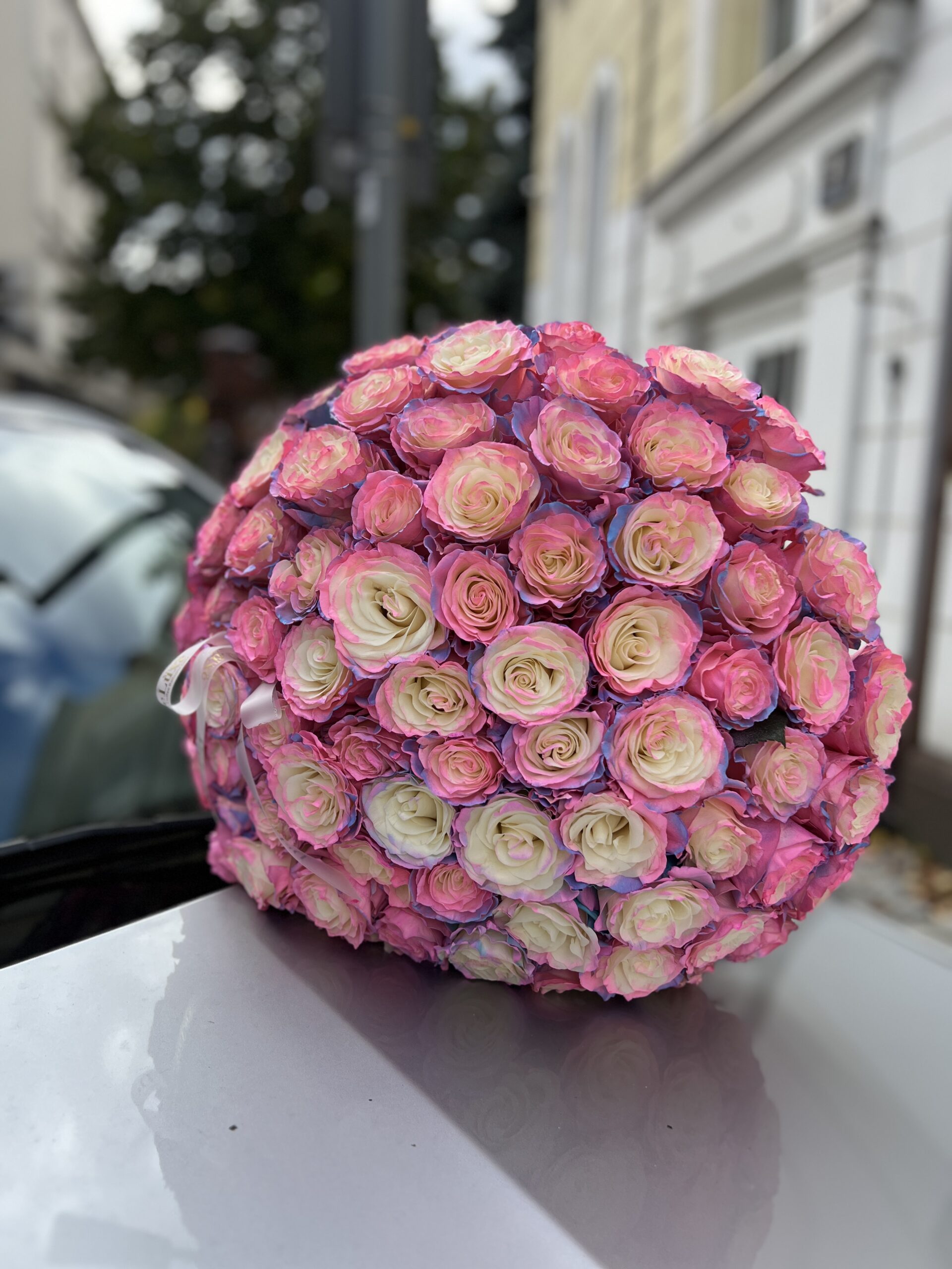 Imponujący bukiet składający się z 101 kolorowych róż w delikatnych, harmonijnych odcieniach. To propozycja dla osób, które szukają wyjątkowego prezentu o luksusowym i nowoczesnym charakterze.