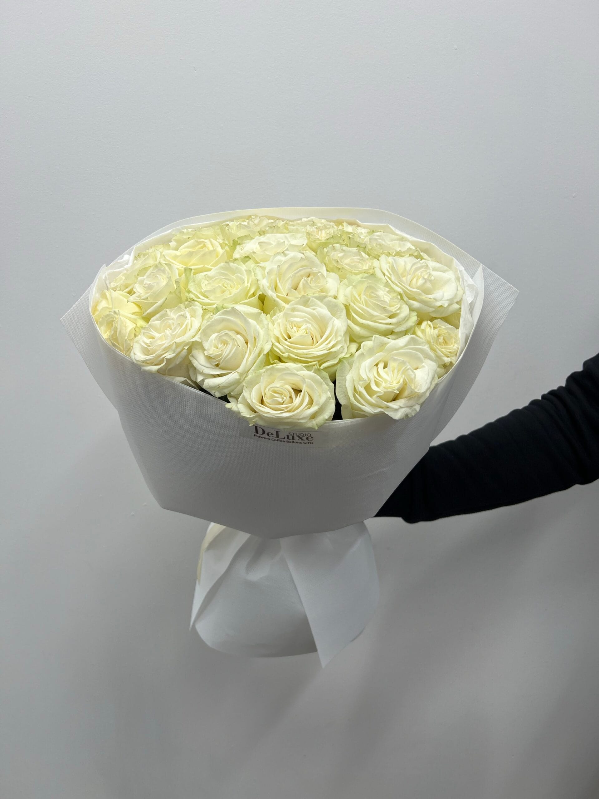 Każda róża została starannie dobrana i ręcznie ułożona przez florystów Studio Deluxe w Poznaniu, tworząc harmonijną i ponadczasową kompozycję. To kwiaty, które zachwycają prostotą i luksusem jednocześnie.
