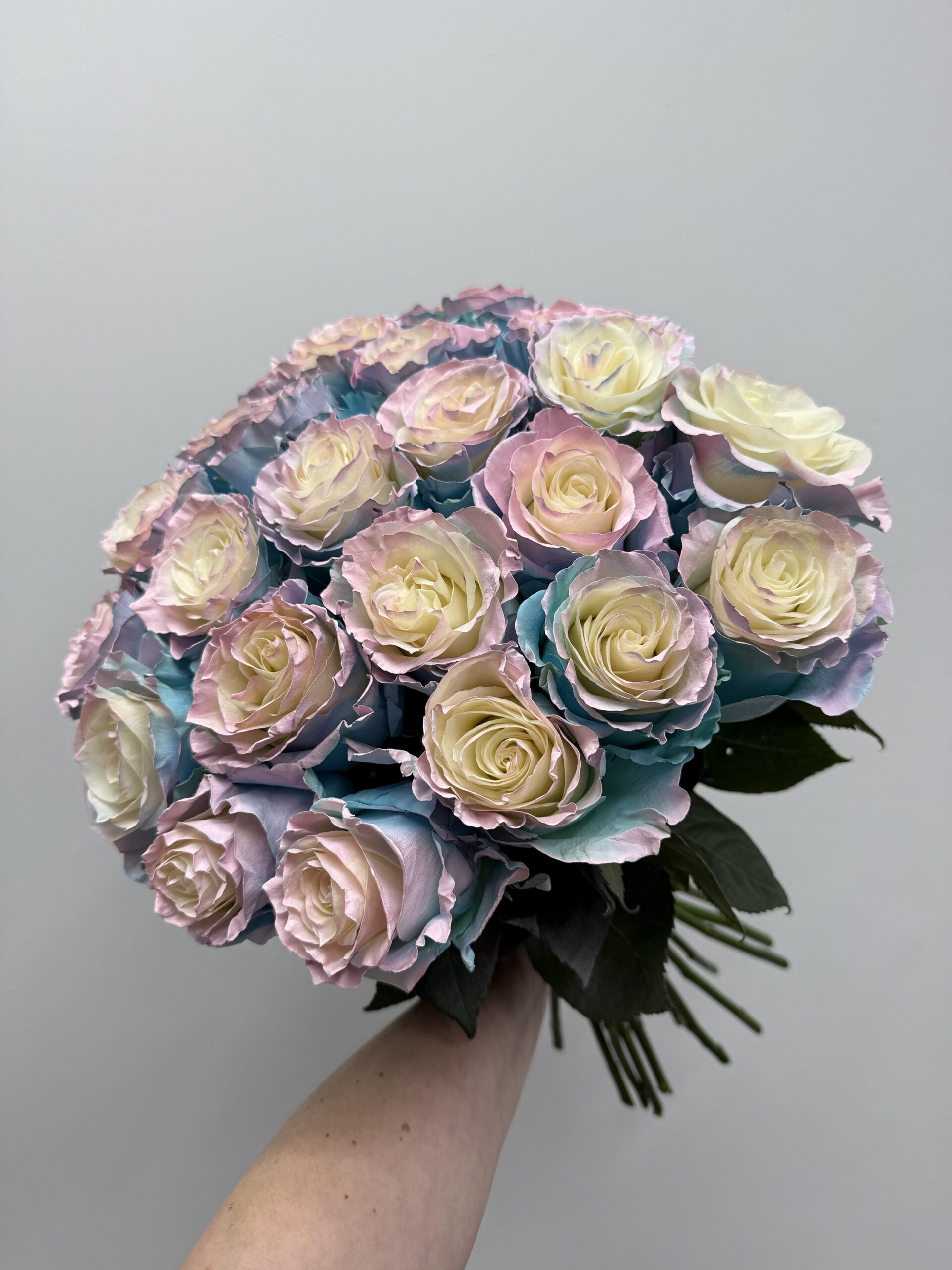 Bukiet z różnokolorowych róż Bubblegum – elegancki, pastelowy mix 21 szt. Idealny na prezent, rocznicę lub wyjątkową okazję.