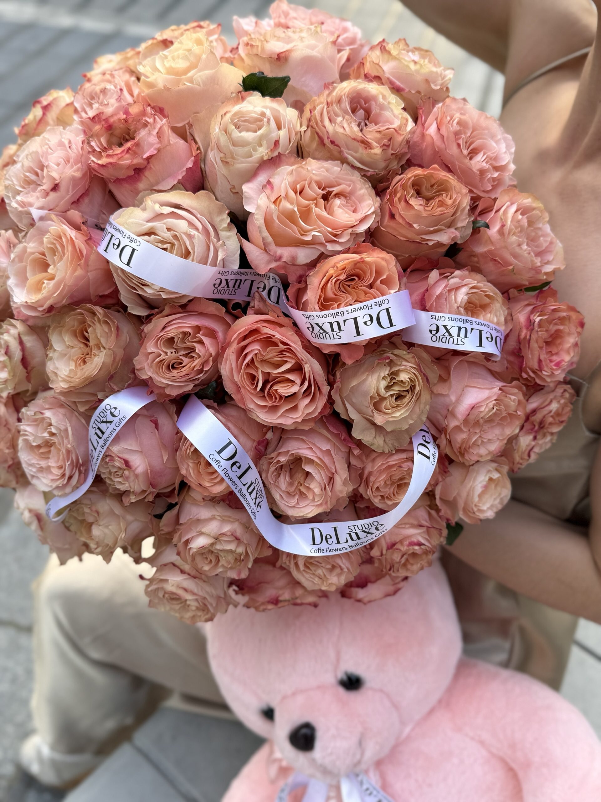 Bukiet z róż Princessa Kroun to kwintesencja elegancji i subtelnego uroku. Odmiana ta zachwyca szlachetną formą kwiatów oraz wyjątkową barwą – delikatny, pastelowy odcień podkreśla ich romantyczny charakter.