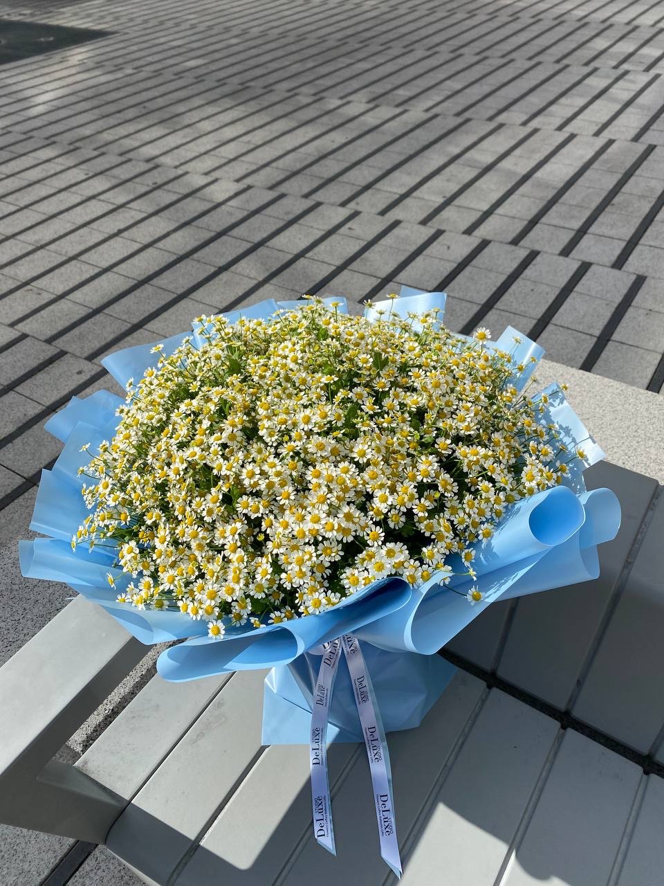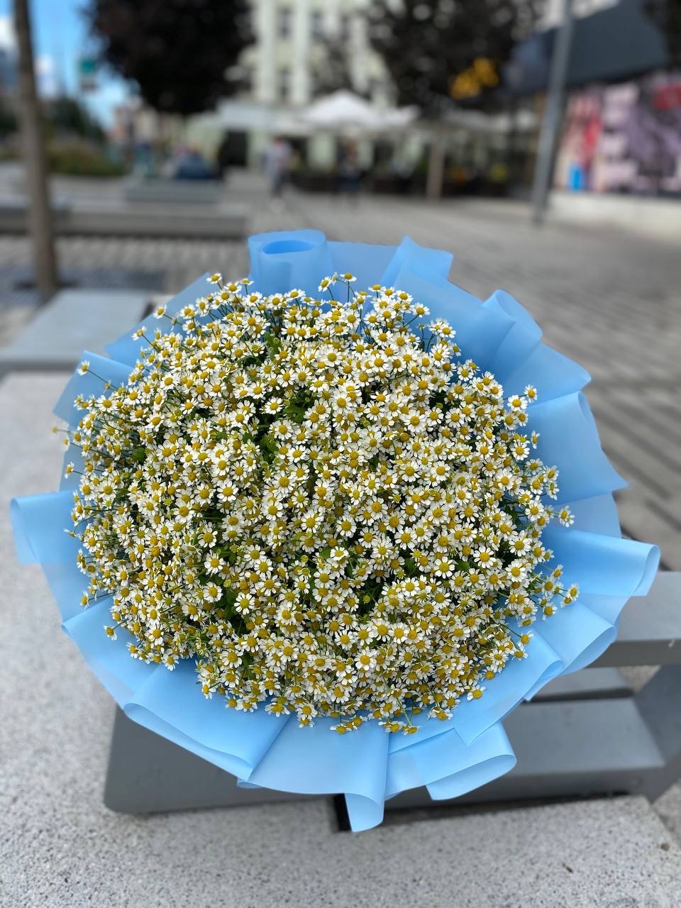 Bukiet to delikatna i świeża kompozycja, która zachwyca naturalnym wyglądem oraz lekkością formy. Drobne kwiaty przypominające rumianek tworzą romantyczny, subtelny bukiet idealny na każdą okazję. W skład bukietu wchodzi tanacetum (rumianek dekoracyjny) oraz dodatki sezonowe i zieleń dekoracyjna, które podkreślają jego swobodny, gardenowy charakter. Bukiet doskonale sprawdzi się jako prezent na urodziny, rocznicę lub jako lekki, niezobowiązujący gest. Naturalna kolorystyka oraz luźna forma sprawiają, że bukiet rumiankowy pasuje do wnętrz w stylu boho, rustykalnym i nowoczesnym.Jeśli szukasz podobnych kompozycji, sprawdź nasze bukiety mieszane oraz monobukiety. Każdy bukiet przygotowywany jest na świeżo, dlatego może się nieznacznie różnić w zależności od dostępności, z zachowaniem naturalnego i lekkiego stylu. Zobacz więcej inspiracji: @studiodeluxe_pl Na zdjęciu bukiet z tanacetum w naturalnej, lekkiej kompozycji.