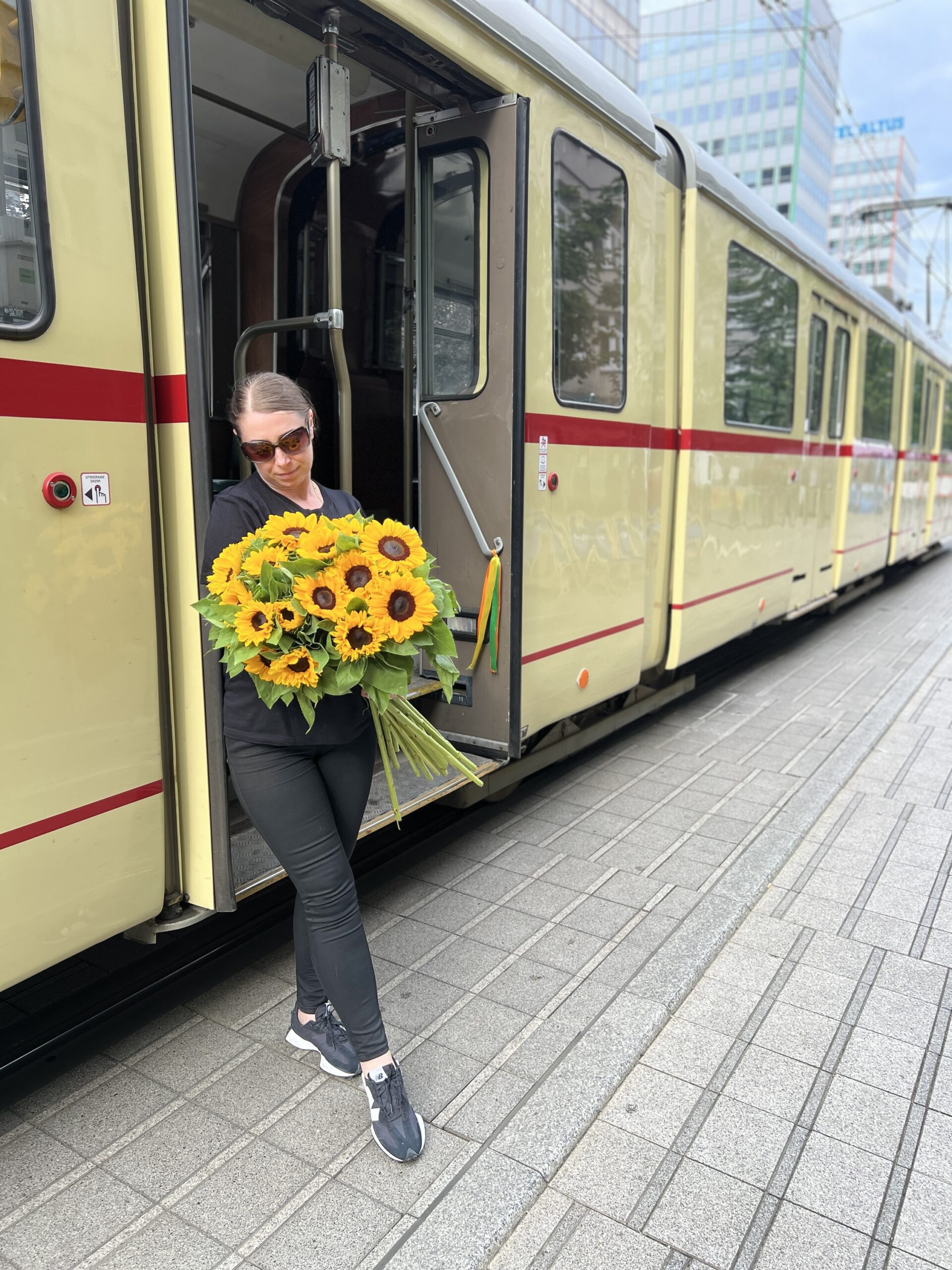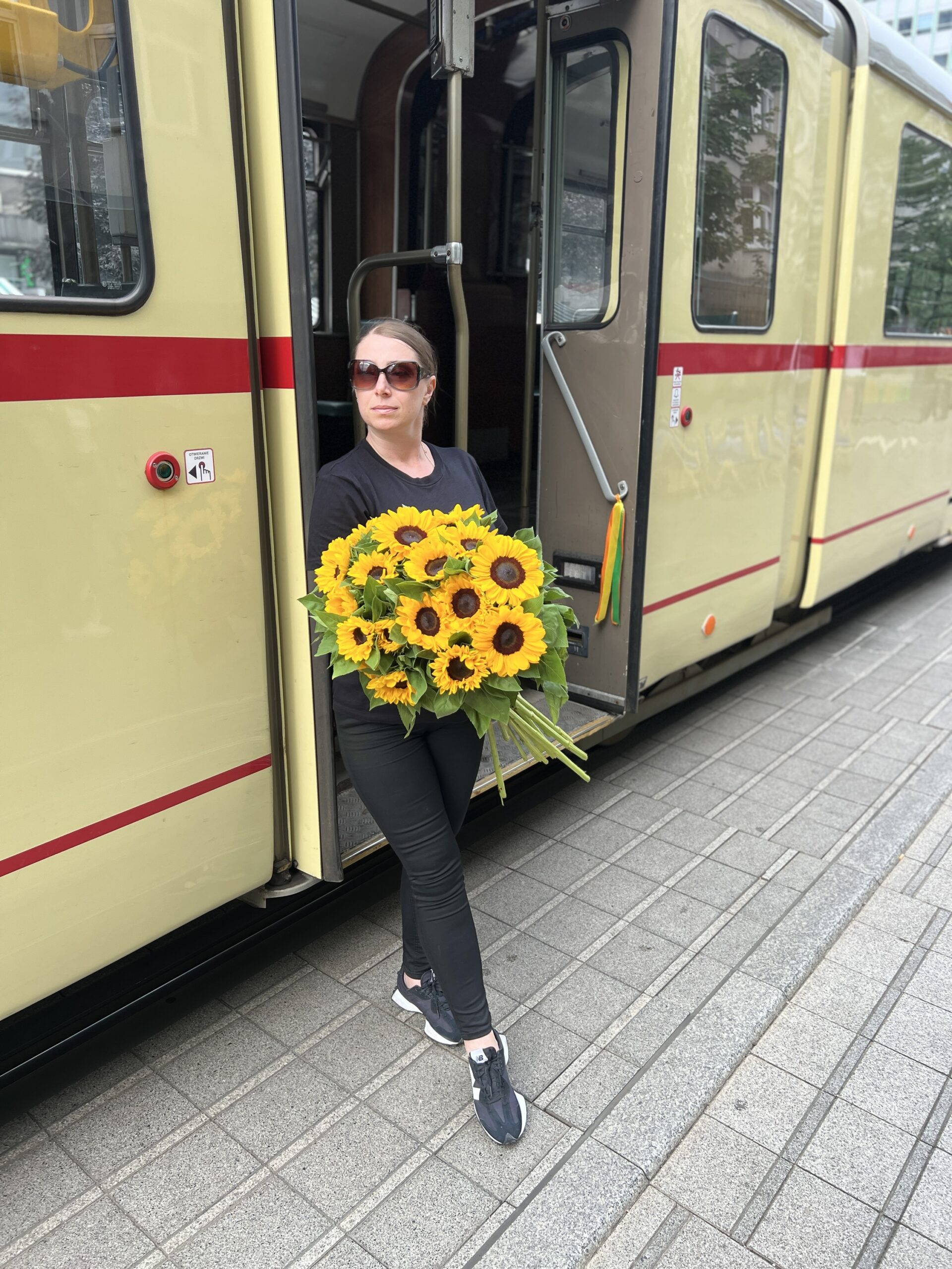 Każdy słonecznik został starannie wyselekcjonowany przez florystów Studio Deluxe w Poznaniu. Kwiaty są ręcznie układane i przewiązywane delikatną wstążką, co nadaje im elegancji i naturalnego wdzięku. To propozycja, która łączy w sobie prostotę natury z nowoczesnym stylem.