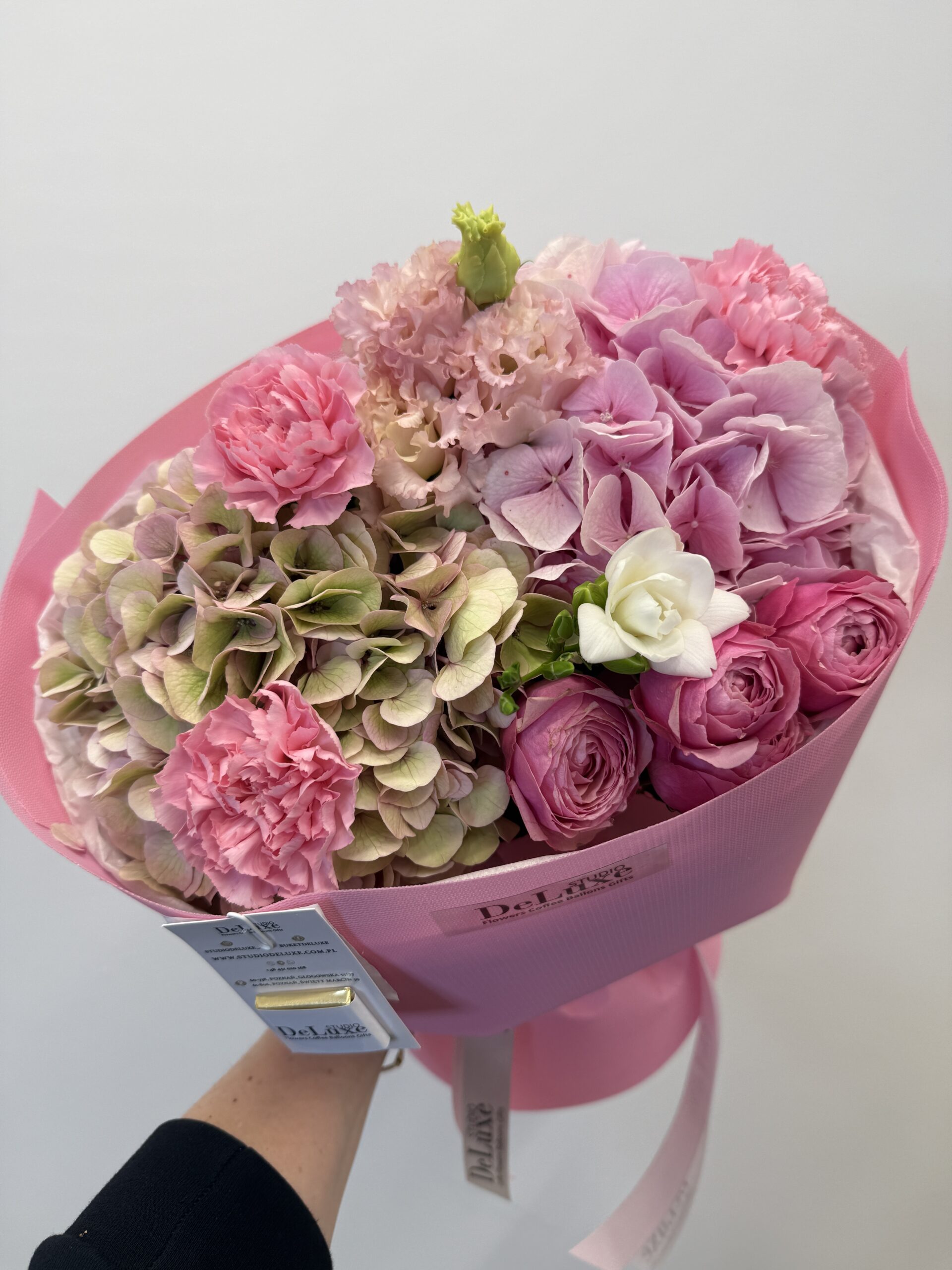 Bukiet z hortensji, róż, eustom i goździków Deluxe