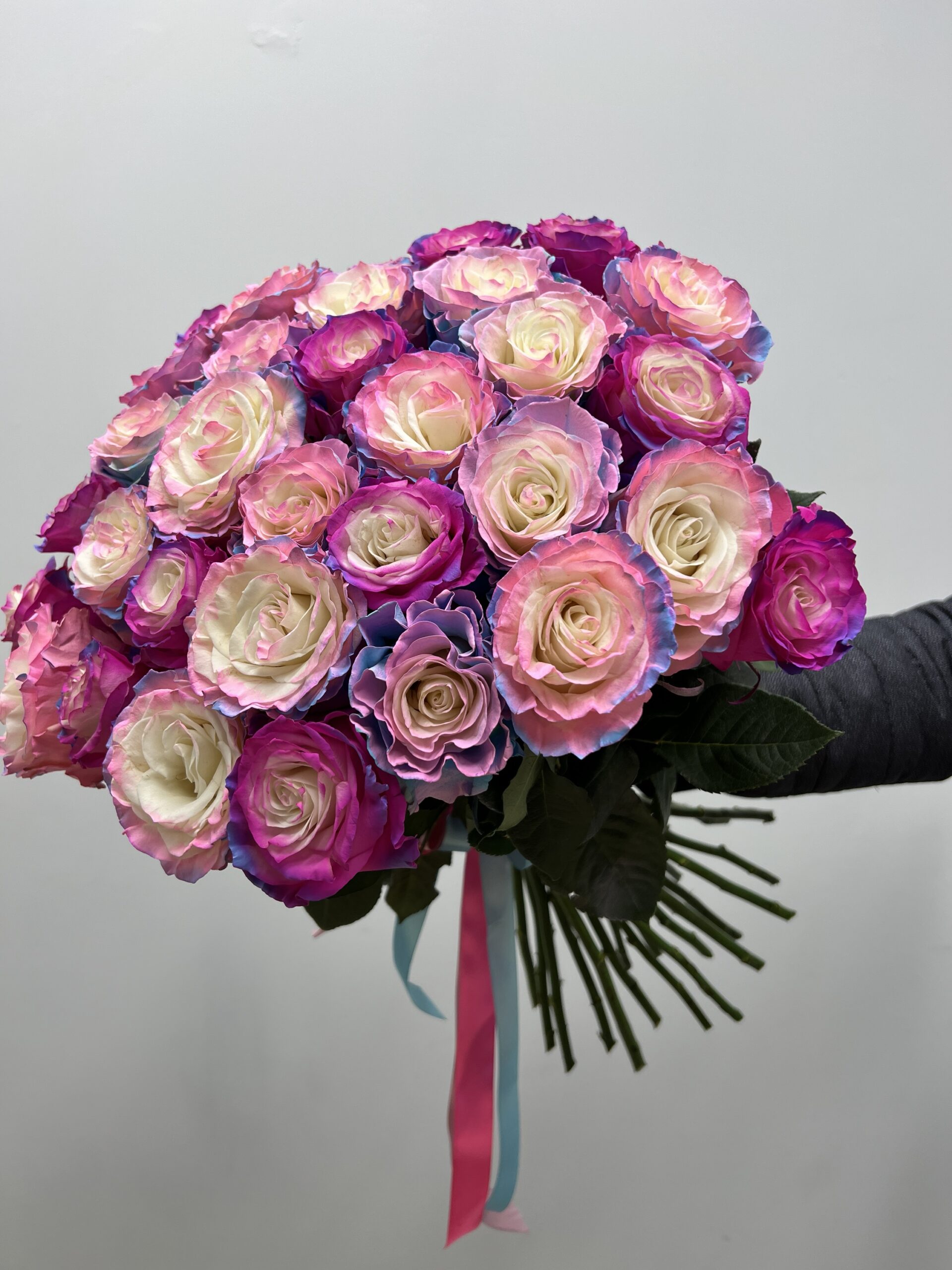 Na zdjęciu kompozycja z 35 kolorowych róż.