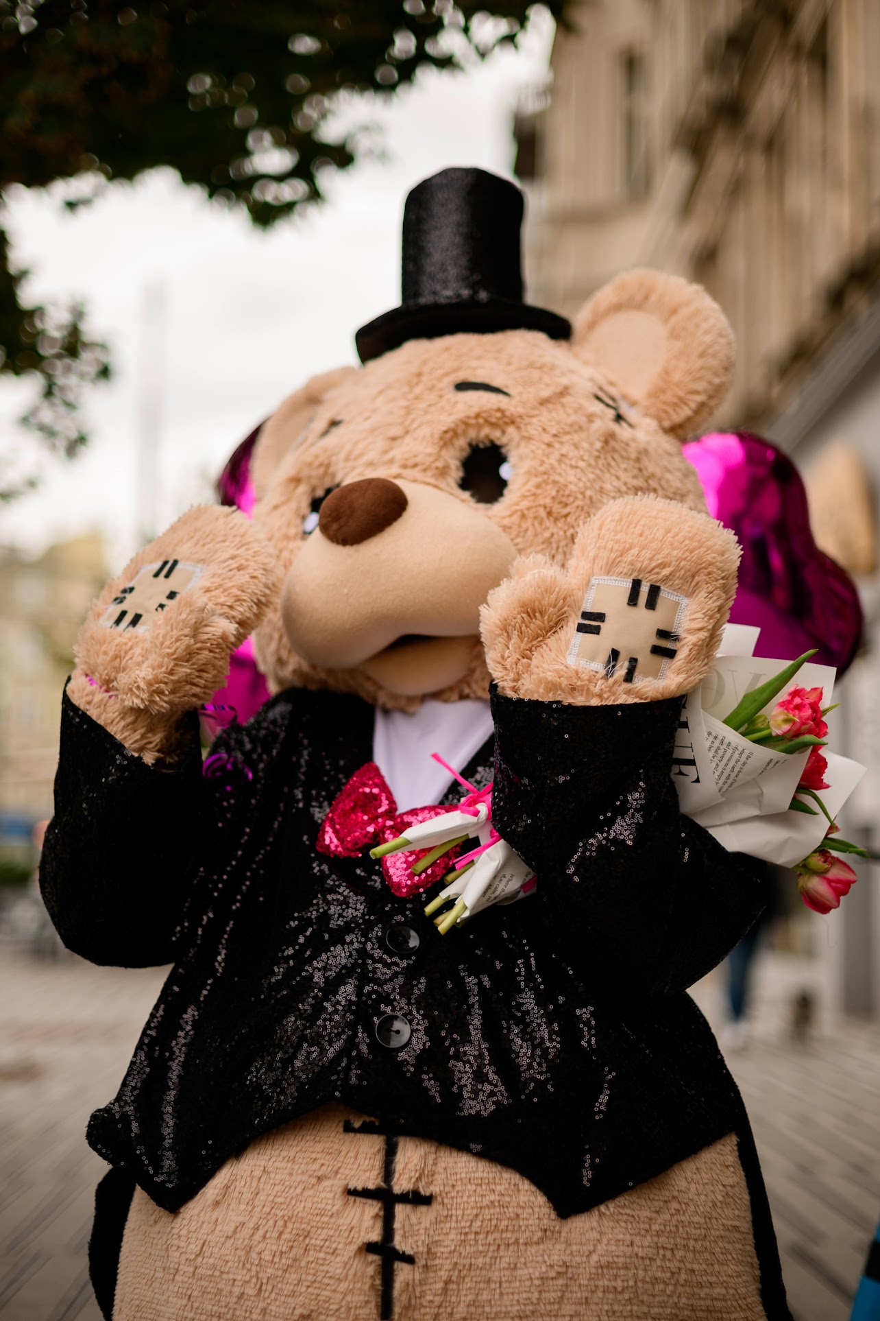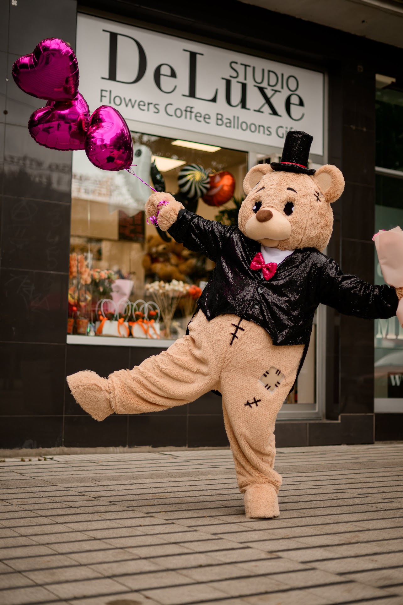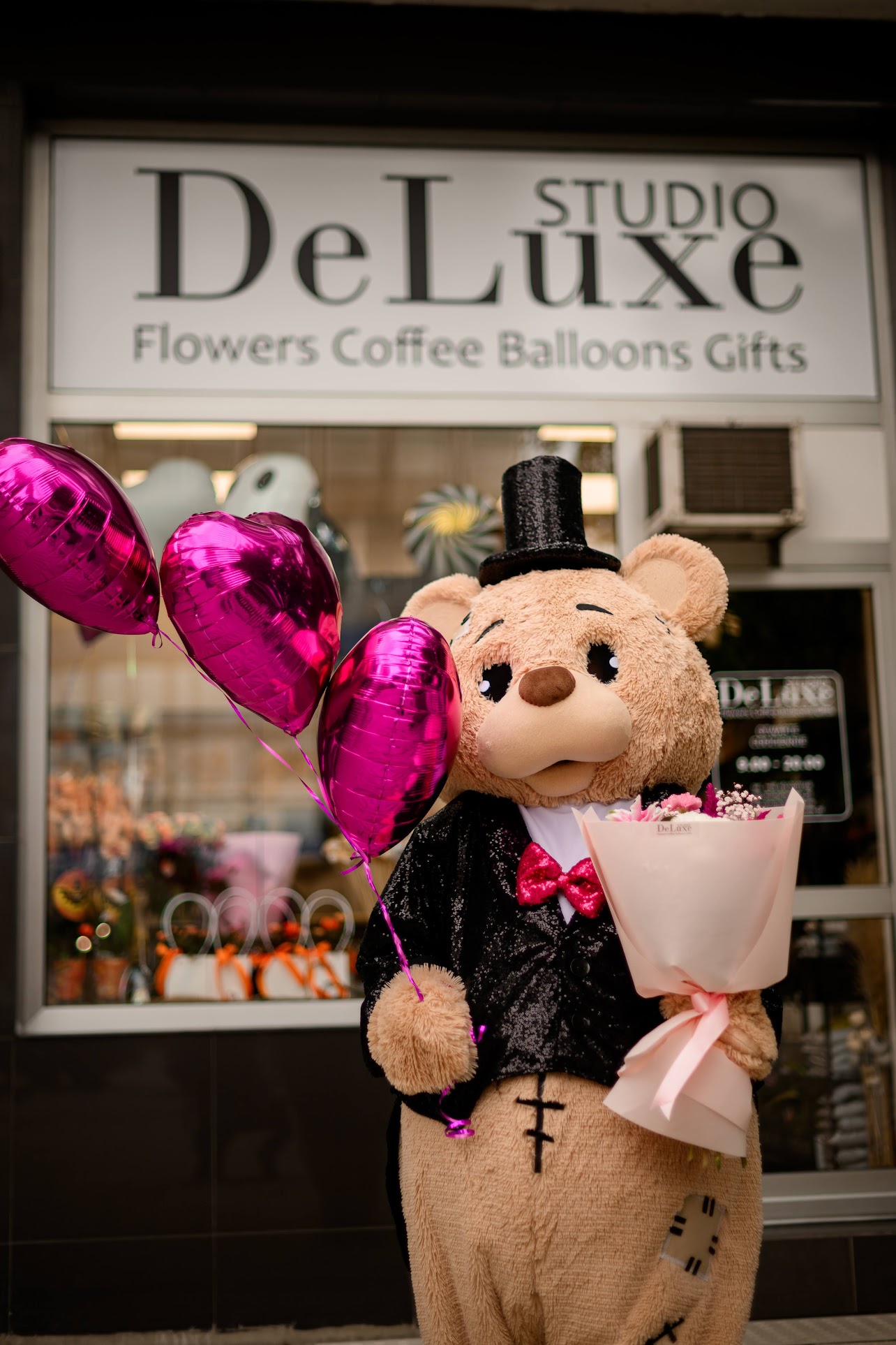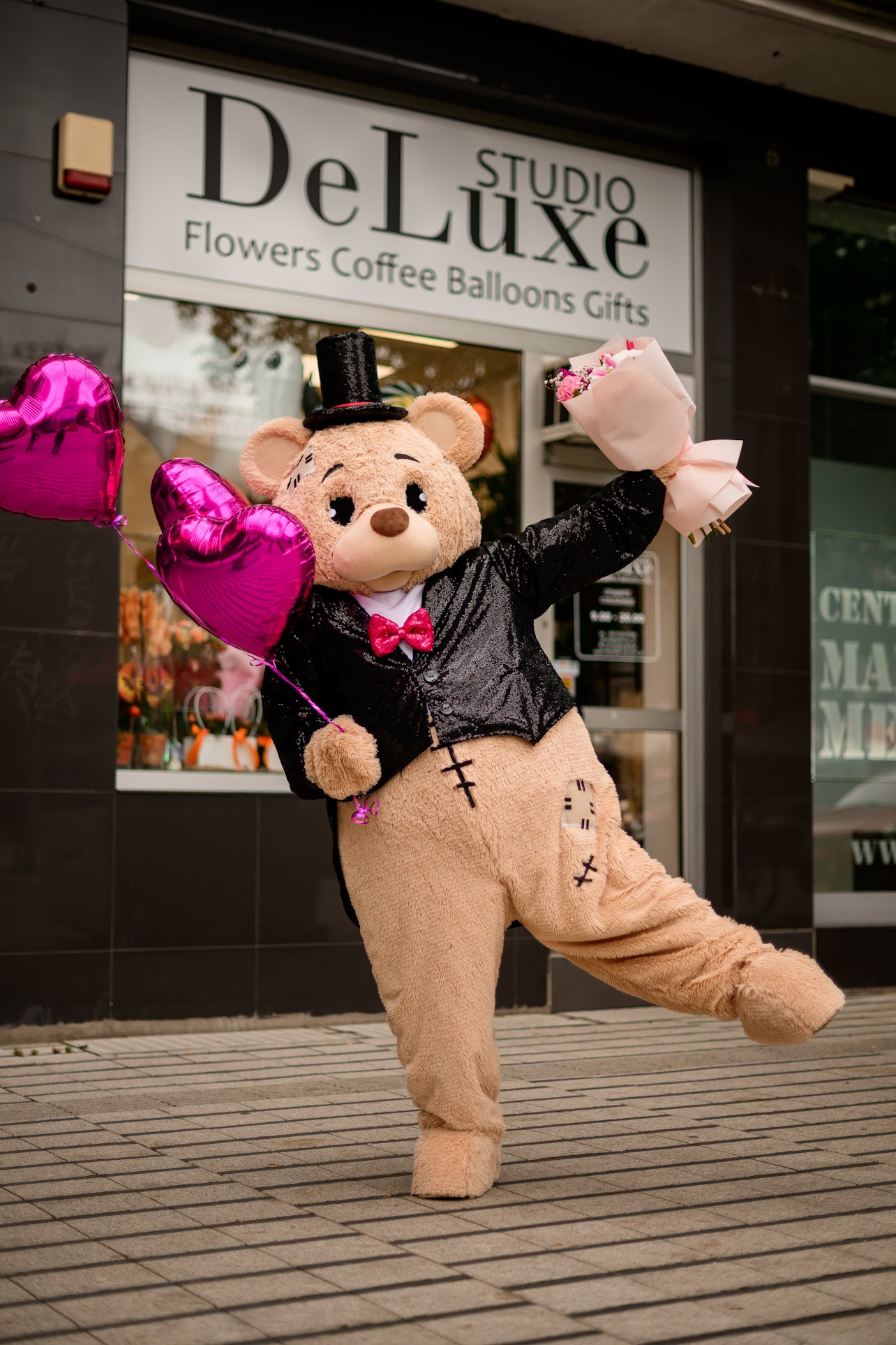 Nowość w Studio Deluxe! Teraz nasze bukiety, balony i zabawki może wręczyć osobiście nasz wyjątkowy Miś-Pan DeLuksik! 🐻😁
