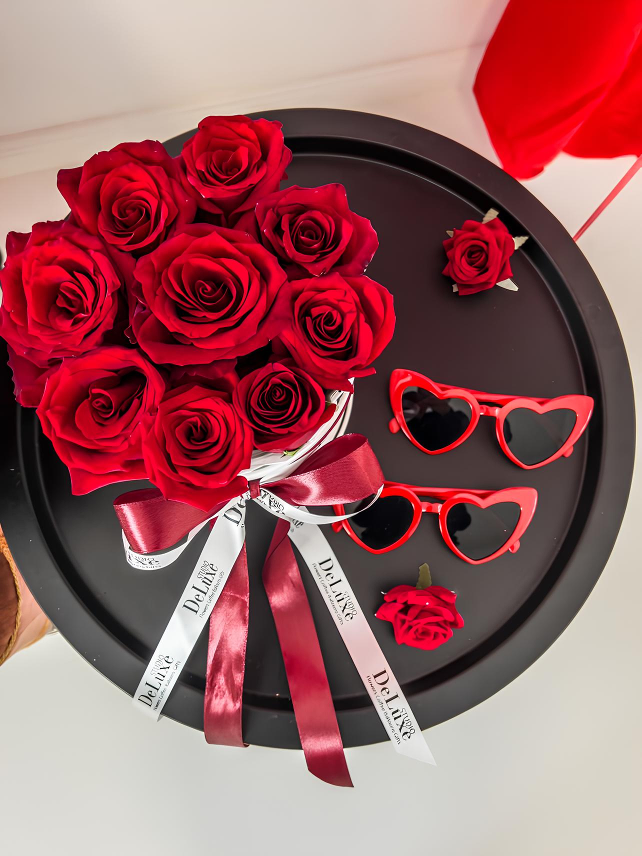 Elegancki Flowerbox z czerwonymi różami – luksusowy prezent na rocznicę, Walentynki i wyjątkowe okazje. Studio Deluxe.
