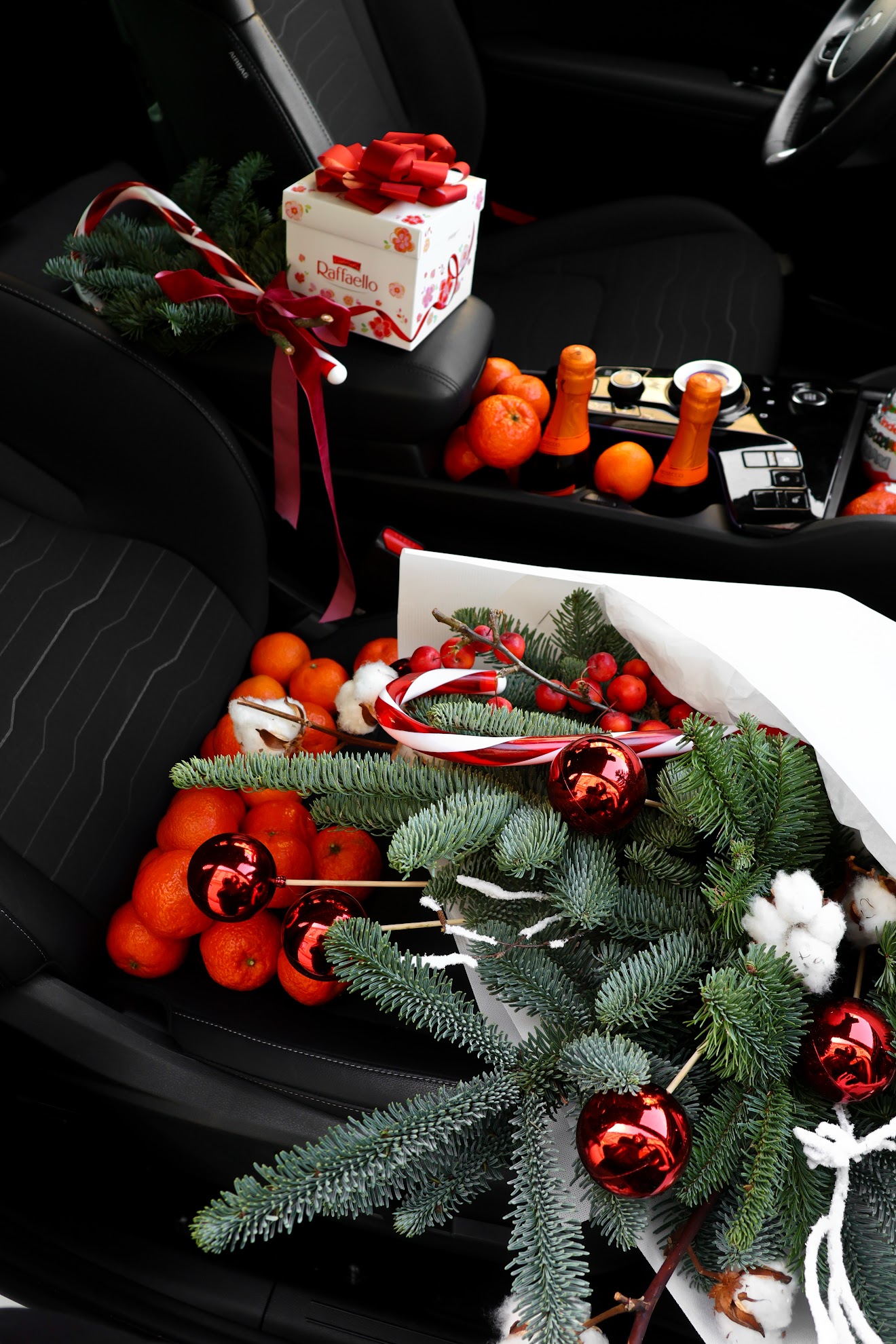 Elegancki świąteczny bukiet z nobilisu, ozdobiony czerwonymi bombkami, naturalną bawełną oraz delikatnymi zimowymi akcentami. Głęboka zieleń igliwia i klasyczna kolorystyka tworzą ponadczasową, świąteczną formę.