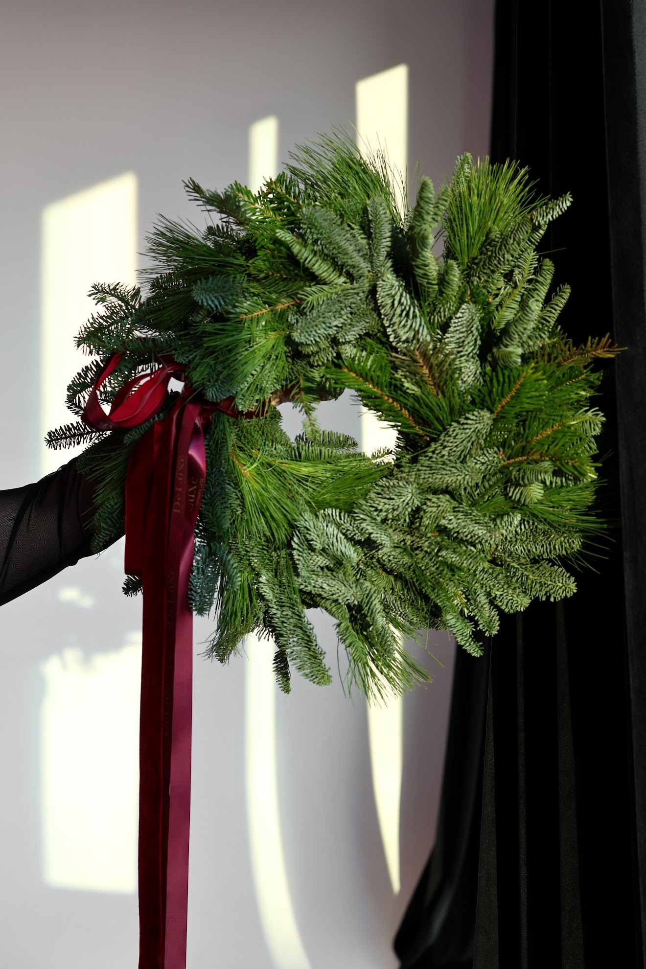 Ręcznie wykonany wianek adwentowy z żywego nobilisa to klasyczna, pięknie pachnąca dekoracja świąteczna. Gęste, świeże gałązki i elegancka bordowa wstążka Studio Deluxe tworzą ponadczasowy, minimalistyczny wygląd, który pasuje do każdego wnętrza.
